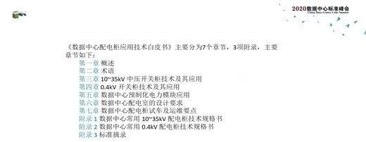 2020年11月25日,《数据中心配电柜应用技术白皮》在20年第八届数据中心标准峰会上正式发布。